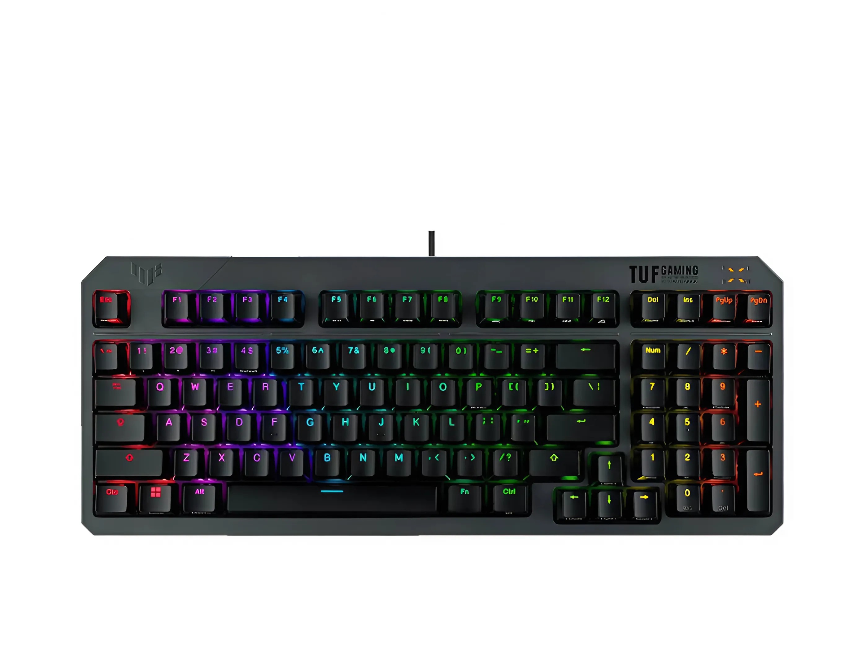 ASUS TUF Gaming K3 Gen II có thiết kế 97 phím, mang lại sự gọn gàng và tiện lợi cho không gian làm việc và chơi game.