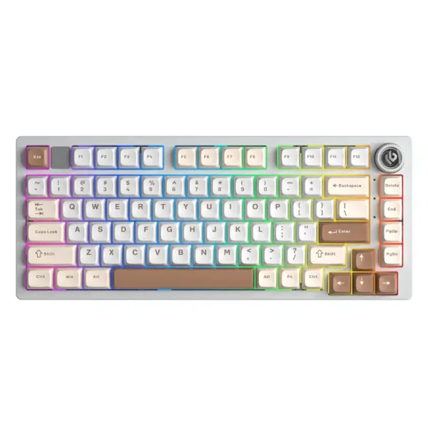 LEOBOG HI75C Pro Be Trắng Nâu mang phong cách phối màu tối giản nhưng vô cùng cuốn hút: sự kết hợp giữa be nhạt, trắng kem và nâu cà phê tạo cảm giác nhẹ nhàng, thanh thoát và sang trọng.