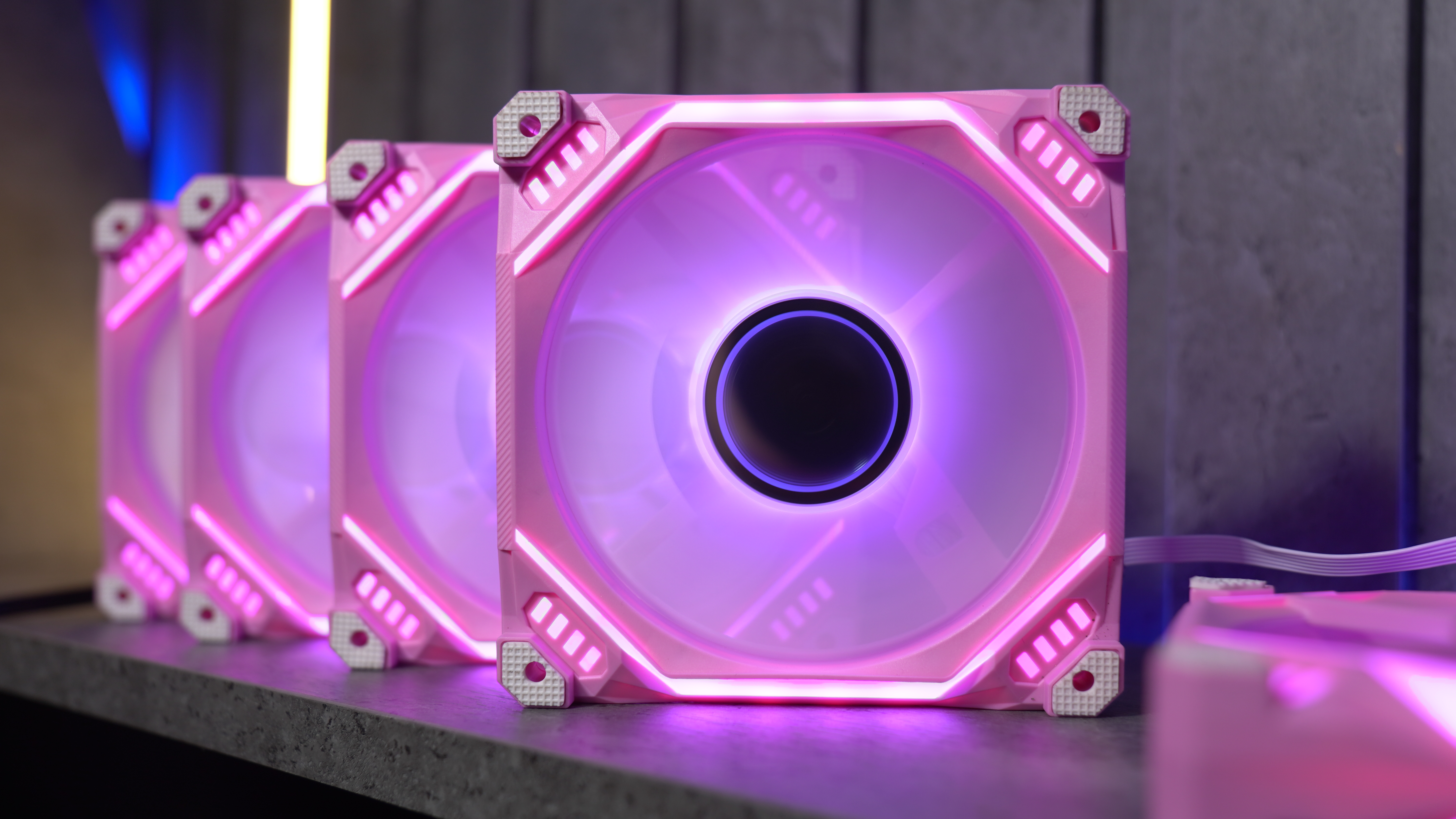 Hệ thống RGB đa sắc mang lại hiệu ứng ánh sáng sống động, đồng bộ với phong cách build PC hiện đại. Màu hồng cá tính giúp dàn máy trở nên độc đáo, khác biệt so với các dòng fan thông thường.