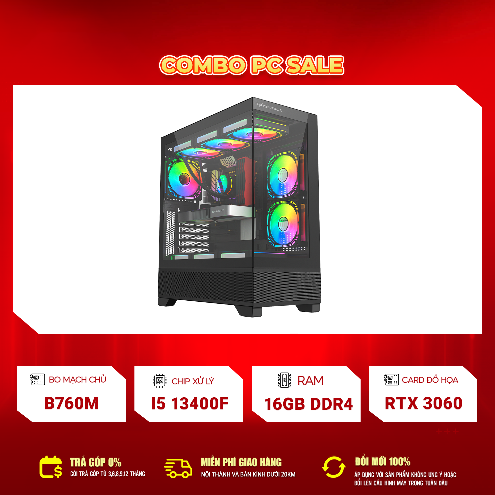 Nguồn Centaur 750W cung cấp dòng điện ổn định cho cả hệ thống có VGA RTX 3060 và CPU đa nhân như i5 13400F, giúp máy hoạt động an toàn và bền bỉ.