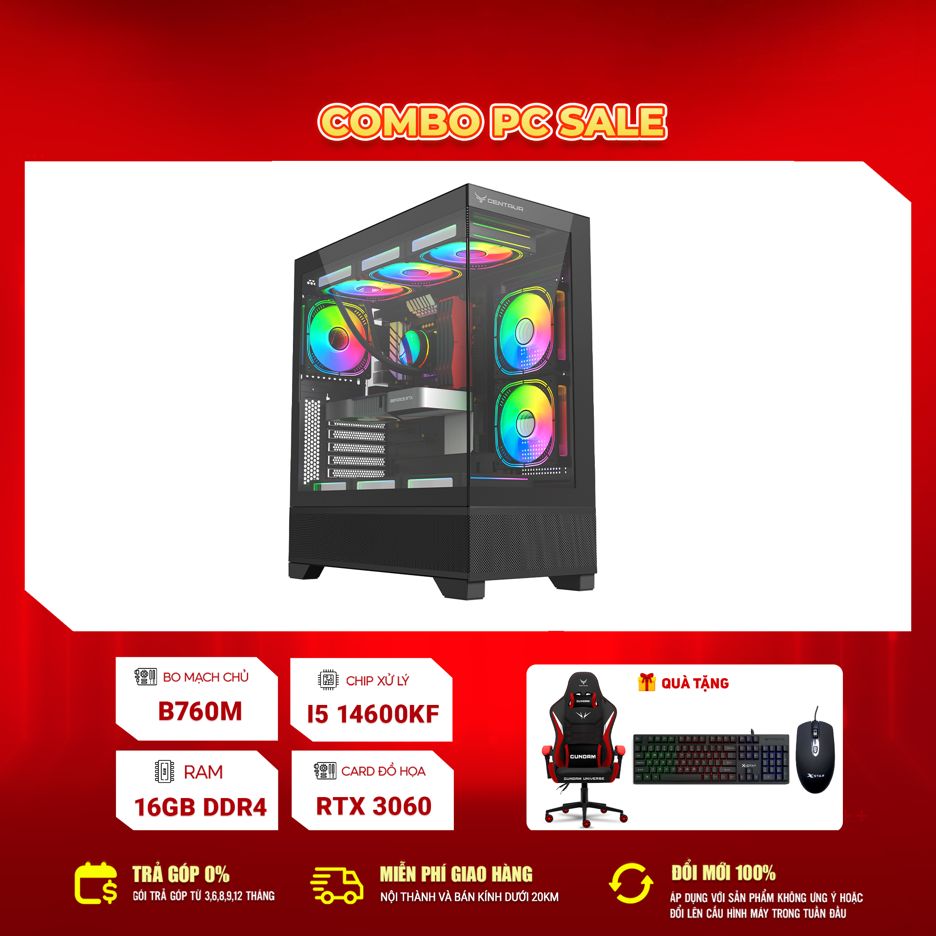 Cấu hình Intel Core i5-14600KF + RTX 3060 12GB là lựa chọn lý tưởng cho game thủ, streamer và người dùng đồ họa chuyên nghiệp. Với hiệu năng mạnh mẽ, hệ thống làm mát tối ưu, ánh sáng RGB nổi bật và combo quà tặng hấp dẫn, dàn máy này đảm bảo mang lại trải nghiệm gaming và làm việc hoàn hảo ngay từ lần sử dụng đầu tiên.