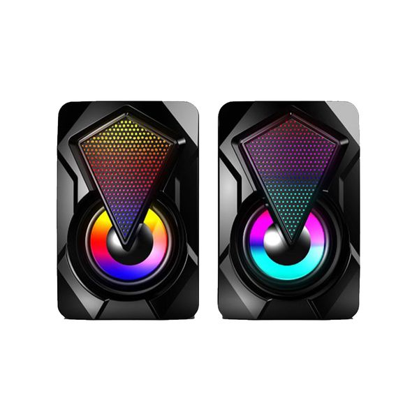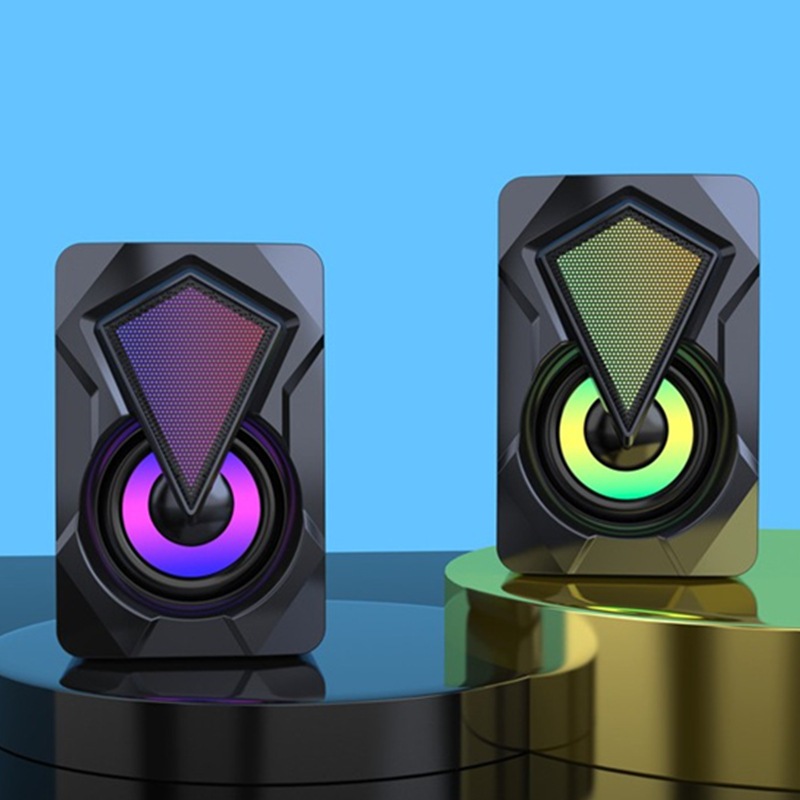 Loa được tích hợp LED RGB tự đổi màu ở mặt trước, tạo không gian làm việc và giải trí sống động, đặc biệt vào ban đêm. Thiết kế hiện đại, góc cạnh rõ ràng, tone đen kết hợp LED khiến sản phẩm trông "gaming" hơn dù nằm trong phân khúc giá rẻ.