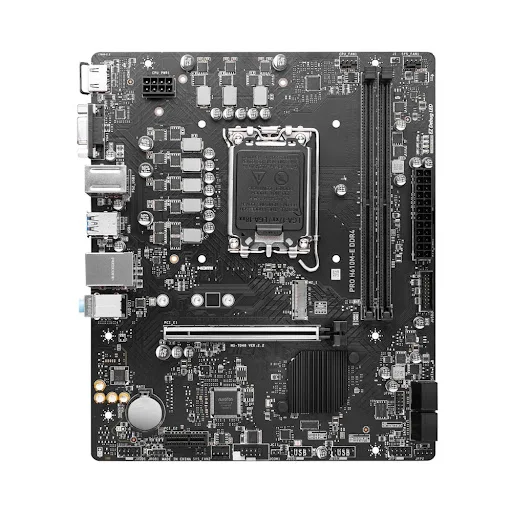 MSI PRO H610M-E DDR4 là bo mạch chủ (mainboard) phổ thông thuộc dòng PRO series của MSI, được thiết kế dành cho người dùng đang muốn build dàn PC tiết kiệm, ổn định, sử dụng CPU Intel thế hệ 12 và 13 socket LGA 1700. Với mức giá hợp lý, hỗ trợ RAM DDR4, các cổng kết nối cơ bản và độ bền cao, sản phẩm này phù hợp cho máy tính văn phòng, học tập, hoặc dàn PC làm việc nhẹ nhàng.