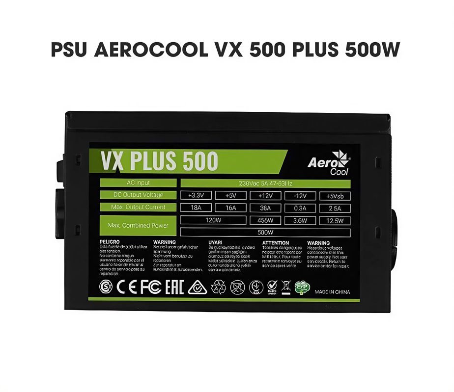 PSU - NGUỒN MÁY TÍNH AEROCOOL VX PLUS 500 500W (CŨ) là một lựa chọn phù hợp cho các hệ thống PC phổ thông với ngân sách hạn chế. Nếu bạn chỉ sử dụng máy tính để làm việc hoặc chơi game nhẹ, đây vẫn là một PSU đáng cân nhắc. Tuy nhiên, nếu bạn muốn sự ổn định lâu dài và hiệu suất cao hơn, nên xem xét các PSU có chứng nhận 80 Plus.