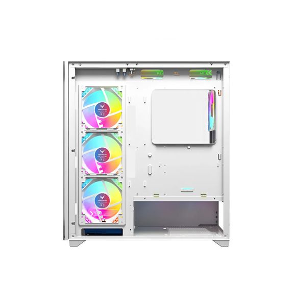 Khả năng tản nhiệt là điểm mạnh của VỎ CASE CENTAUR NOVA WHITE. Case đi kèm 3 quạt ARGB mặt trước, giúp tạo luồng gió làm mát hiệu quả ngay từ đầu. Ngoài ra, người dùng có thể lắp tối đa 6 quạt 120mm, đảm bảo luồng khí lưu thông tốt. Nếu thích tản nhiệt nước, case hỗ trợ radiator 360mm phía trước và 240mm phía trên, giúp duy trì nhiệt độ ổn định cho các cấu hình gaming hoặc workstation cao cấp.