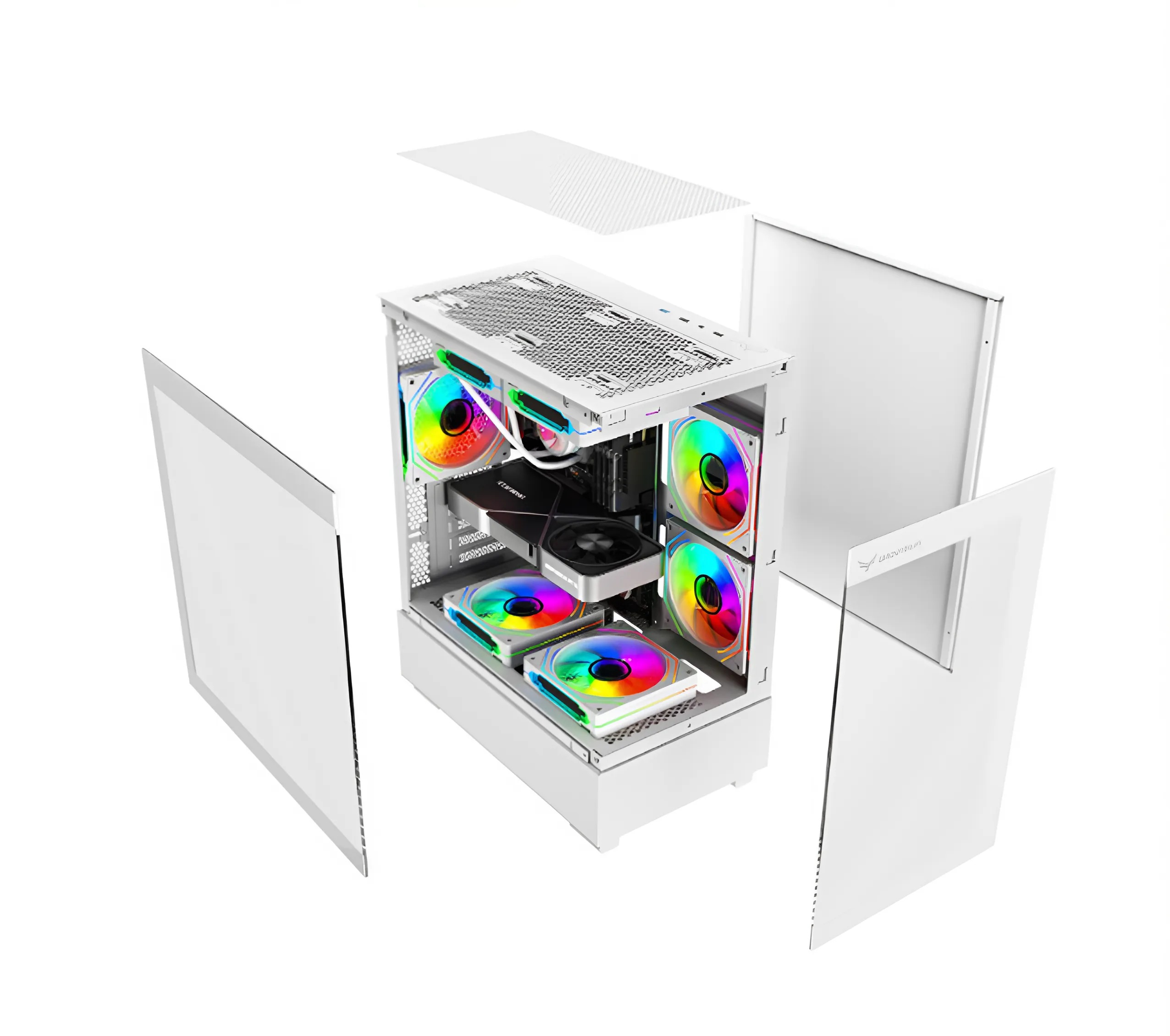 Case có thể lắp tối đa 6 quạt 120mm, giúp tăng cường luồng khí lưu thông từ trước ra sau. Mặc định, case đi kèm 3 quạt ARGB mặt trước, tạo hiệu ứng ánh sáng đẹp mắt và hỗ trợ làm mát tốt ngay từ đầu.