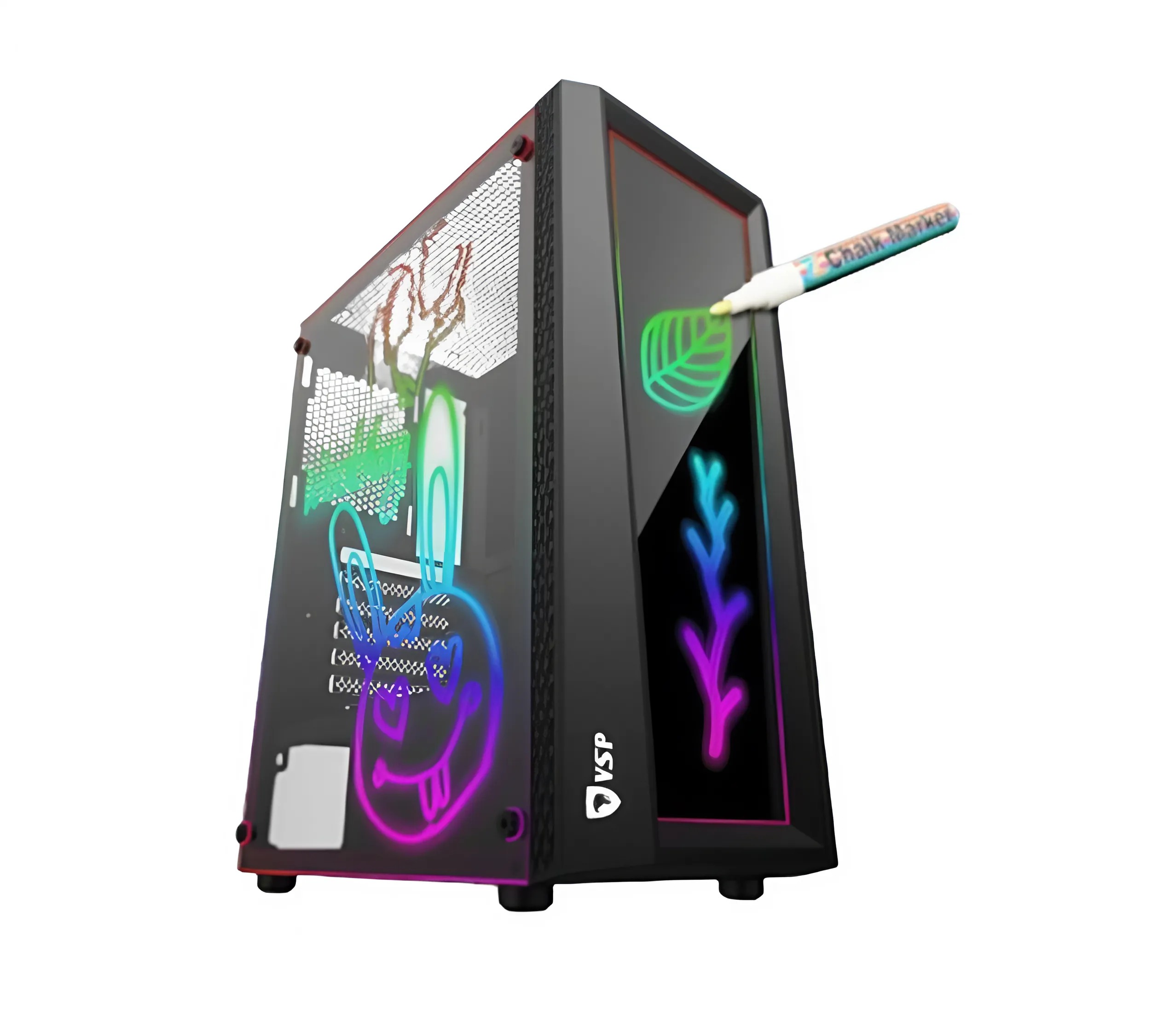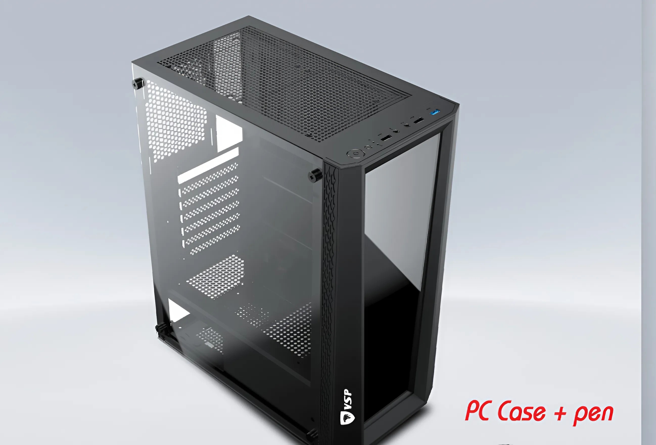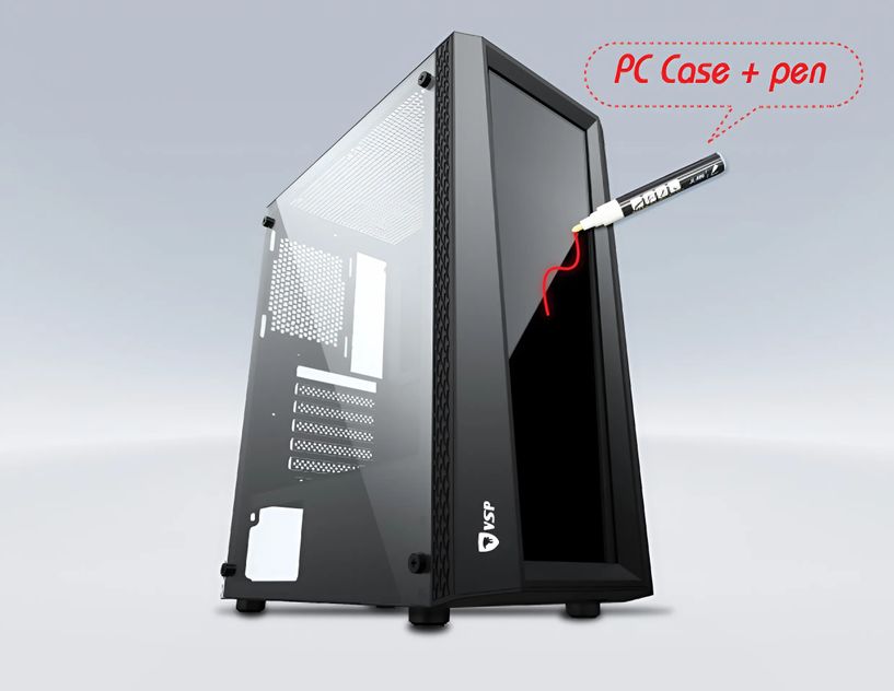 Vỏ case VSP P18+ sở hữu thiết kế mạnh mẽ với tông màu đen sang trọng, phù hợp với nhiều phong cách setup từ gaming đến văn phòng. Khung case làm từ thép SPCC dày 0.7mm, mang lại độ bền cao và khả năng chống rung tốt. Mặt kính cường lực bên hông giúp người dùng dễ dàng khoe trọn linh kiện bên trong, tạo điểm nhấn thẩm mỹ cho dàn PC.