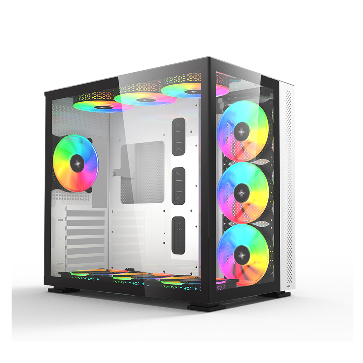 Ngoài ra, case có thể bố trí nhiều quạt RGB, nâng cao thẩm mỹ và hiệu suất tản nhiệt cho toàn bộ hệ thống.