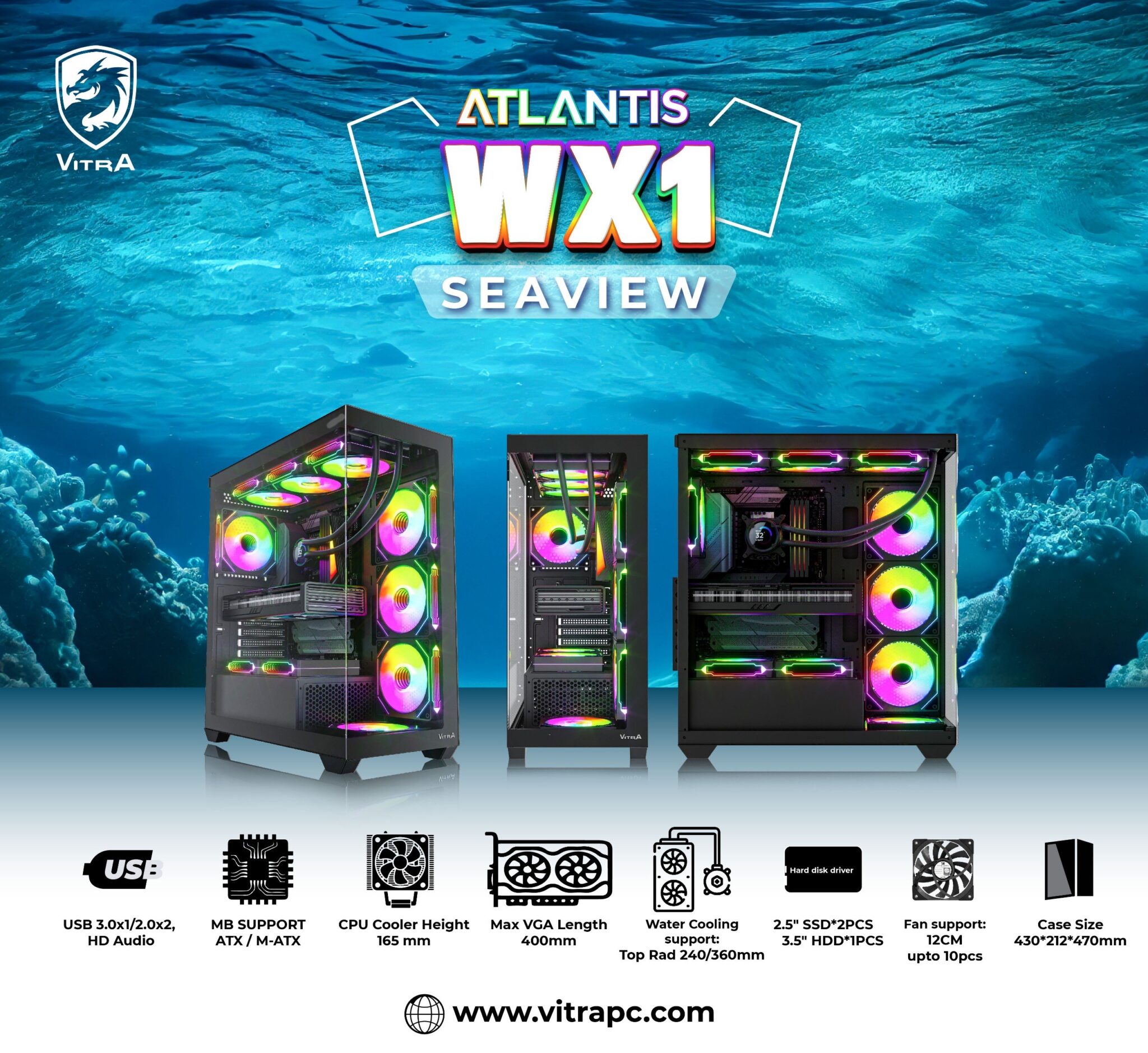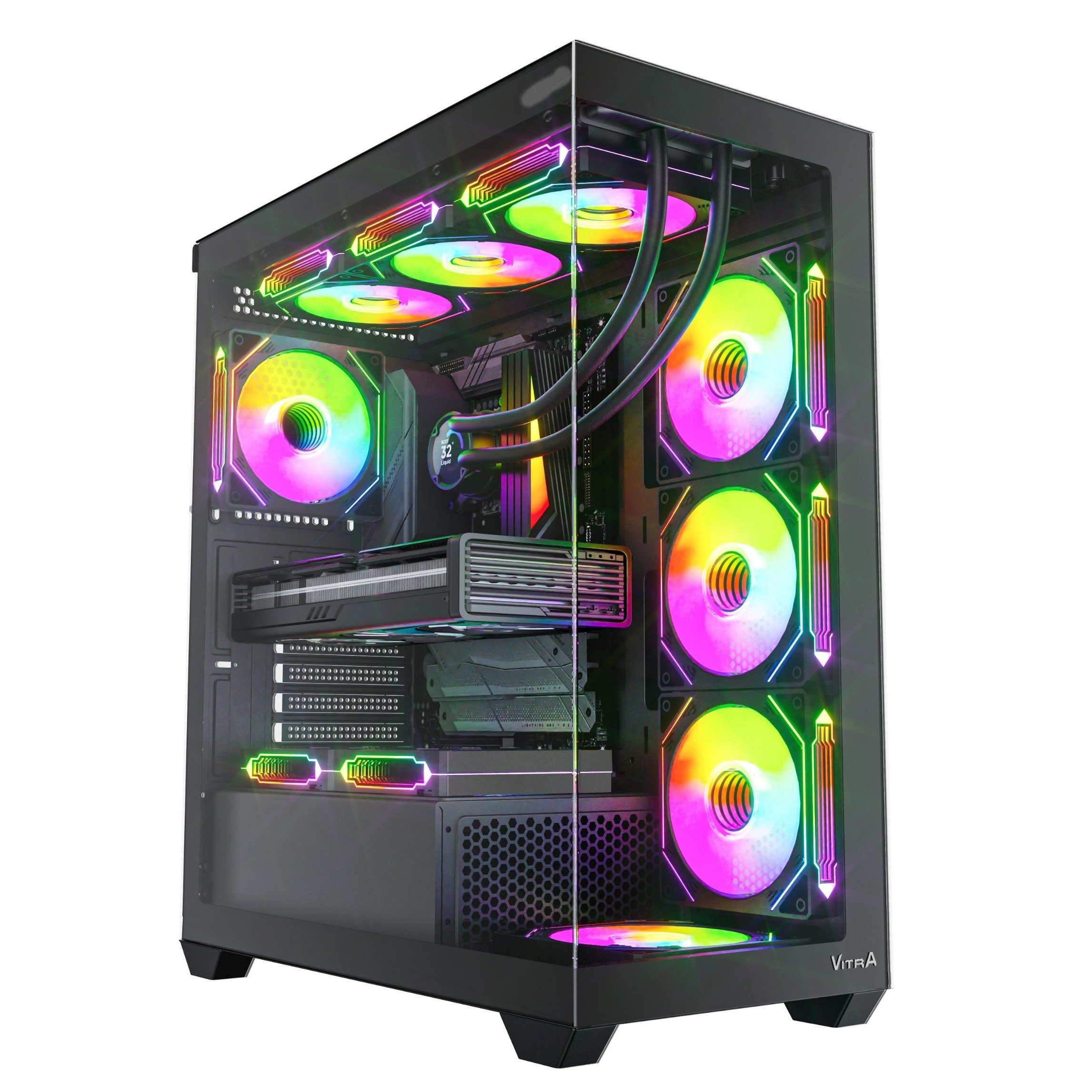Vỏ Máy Tính Vitra Atlantis WX1 Black | Thiết Kế “Bể Cá Vô Cực” – Không Gian Rộng Rãi Cho Gaming & Hi-End PC